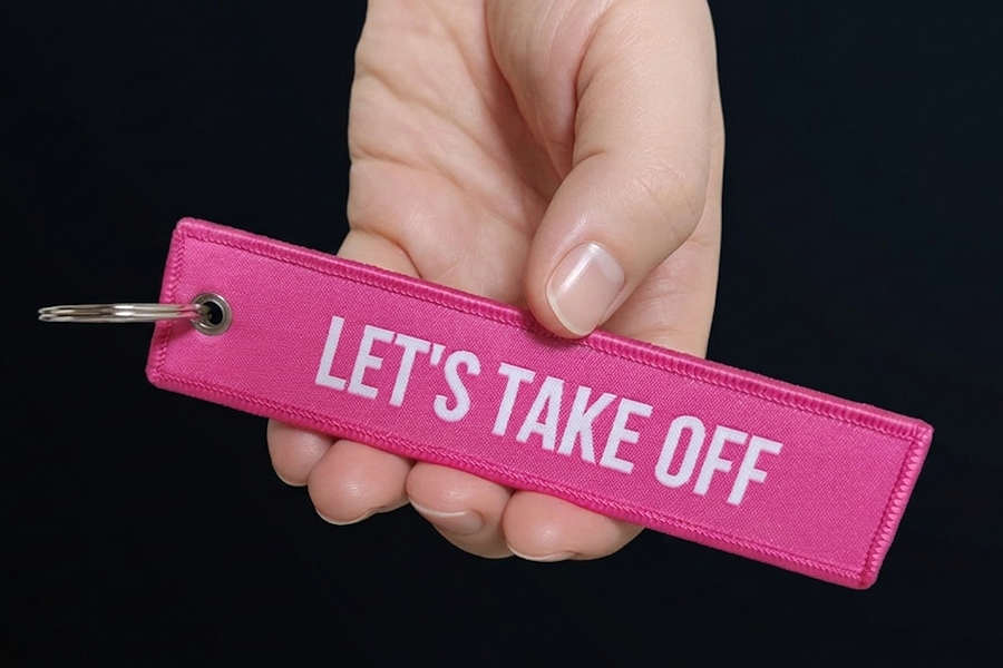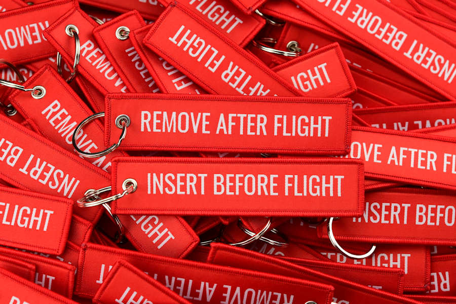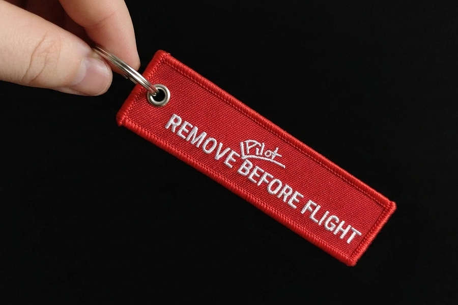 Custom Woven, Embroidered & Printed Jet Tags and Remove Before Flight Keychains